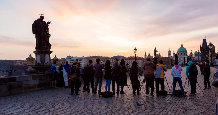 Ever wonder how to get sunrise shots without all the people like the image below? Well, you do have to get up very early. When it’s dark in fact. Then make your way to where you want to shoot and set yourself up. Then you just have to wait. Using a tripod is a must, as well as a long open shutter. That way any walkers by will not appear in the final image – like the one at the top of the page. We got up very early and were at the bridge when it was still dark. Getting to a spot to do a sunrise shot at sunrise is really missing out on getting the best golden light, plus you have dozen’s of other trying to do the same thing. A half hour after we got the shots we needed, the bridge was full with other photographers wanting their sunrise shots too.